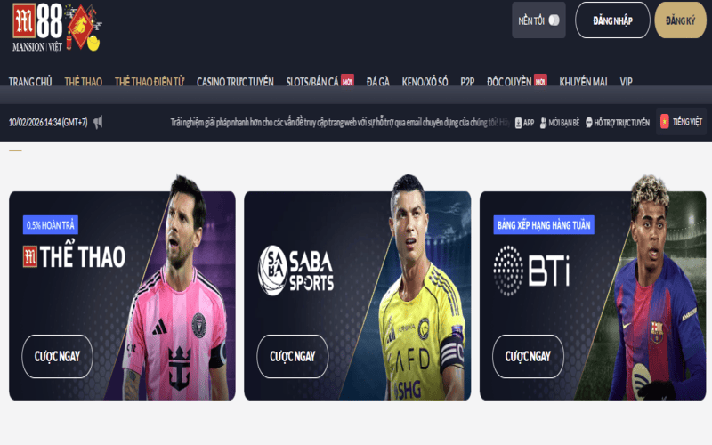 Lý do khiến M 88 luôn nằm trong top những lựa chọn hàng đầu của cược thủ chính là sự đầu tư bài bản vào sảnh thể thao. Đây là nơi hội tụ tinh hoa của các giải đấu lớn nhỏ trên khắp hành tinh với bảng kèo đa dạng và cập nhật liên tục. Người chơi không chỉ tìm thấy bóng đá mà còn hàng chục bộ môn thể thao khác, tất cả đều được trình bày một cách khoa học và dễ hiểu trên giao diện cá cược chuyên nghiệp.